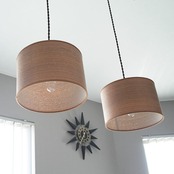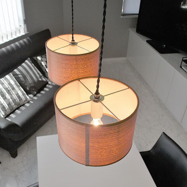 ウォルナットの板を薄く加工し、シェードに仕立てました。丸い筒状のシェードは、上下からだけでなくシェードそのものが光ります。木の優しい風合いをさらに引き立て、優しい雰囲気に。