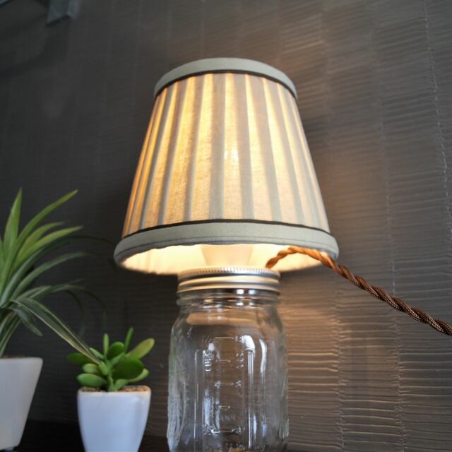 大人気Ball社メイソンジャーをベースに、かわいらしいファブリックシェードをあしらったおしゃれなテーブルライト。スタンドタイプなので寝室やデスク周り、リビングなどの寛ぎスペースなど場所を問わず素敵な空間を演出してくれます。